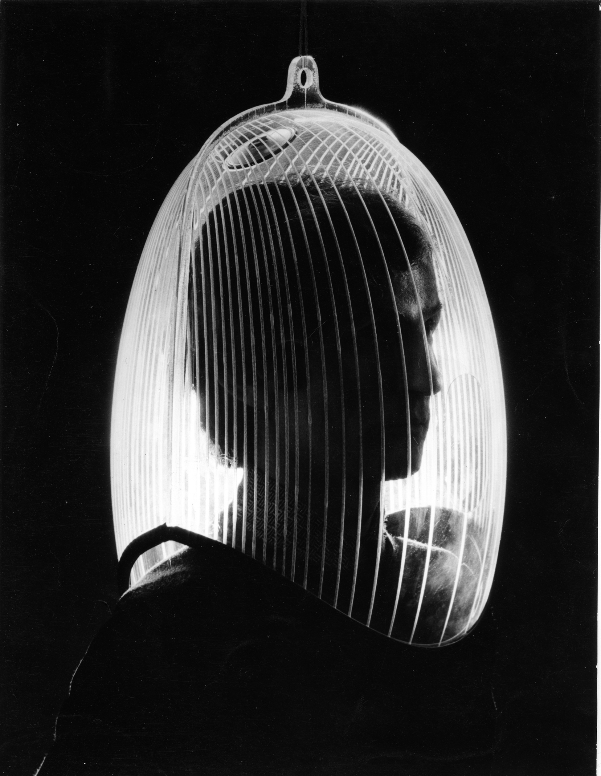 metal structure,methacrylate helmet, a sliding rail and a loudspeaker that transmits a soundtrack using a tape recorder