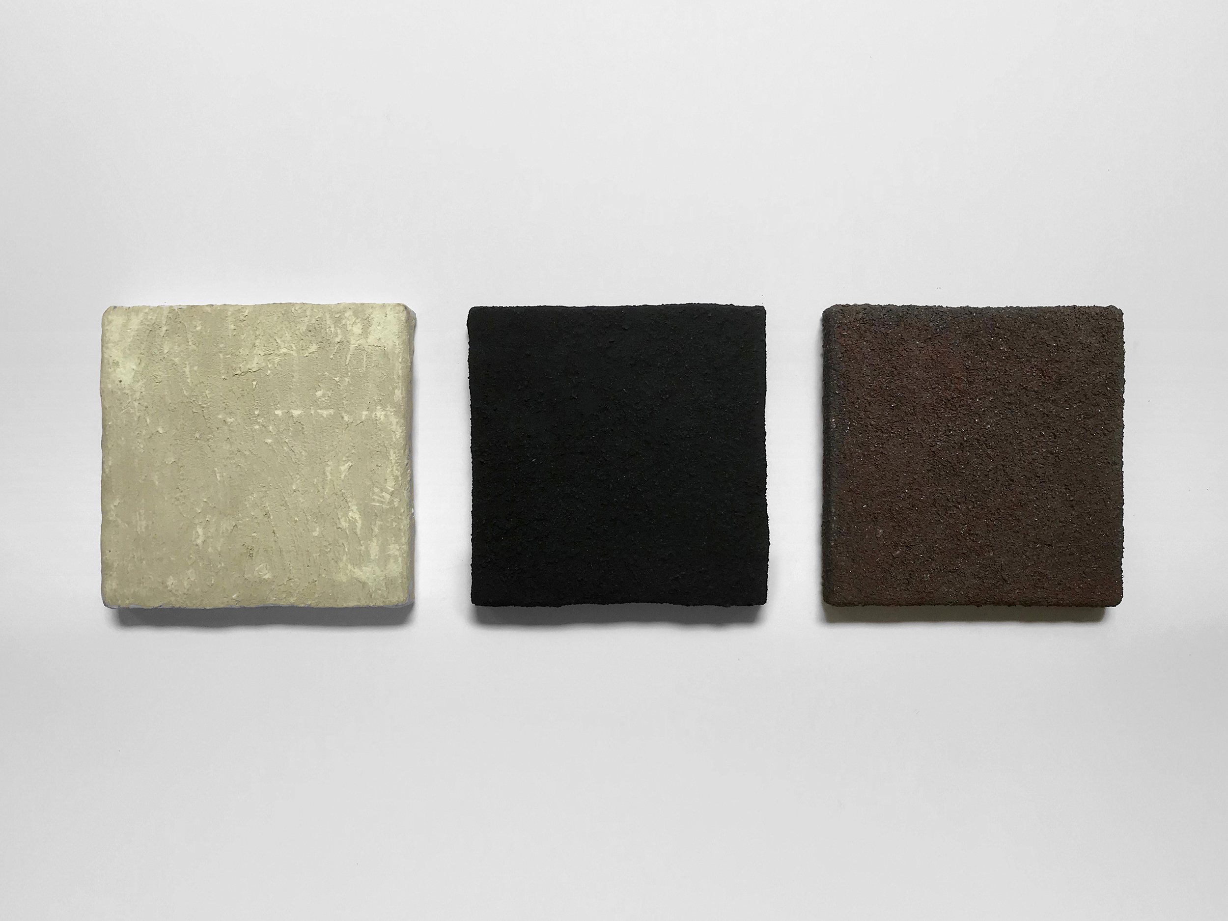 Sulphur, charcoal and iron filings on canvas