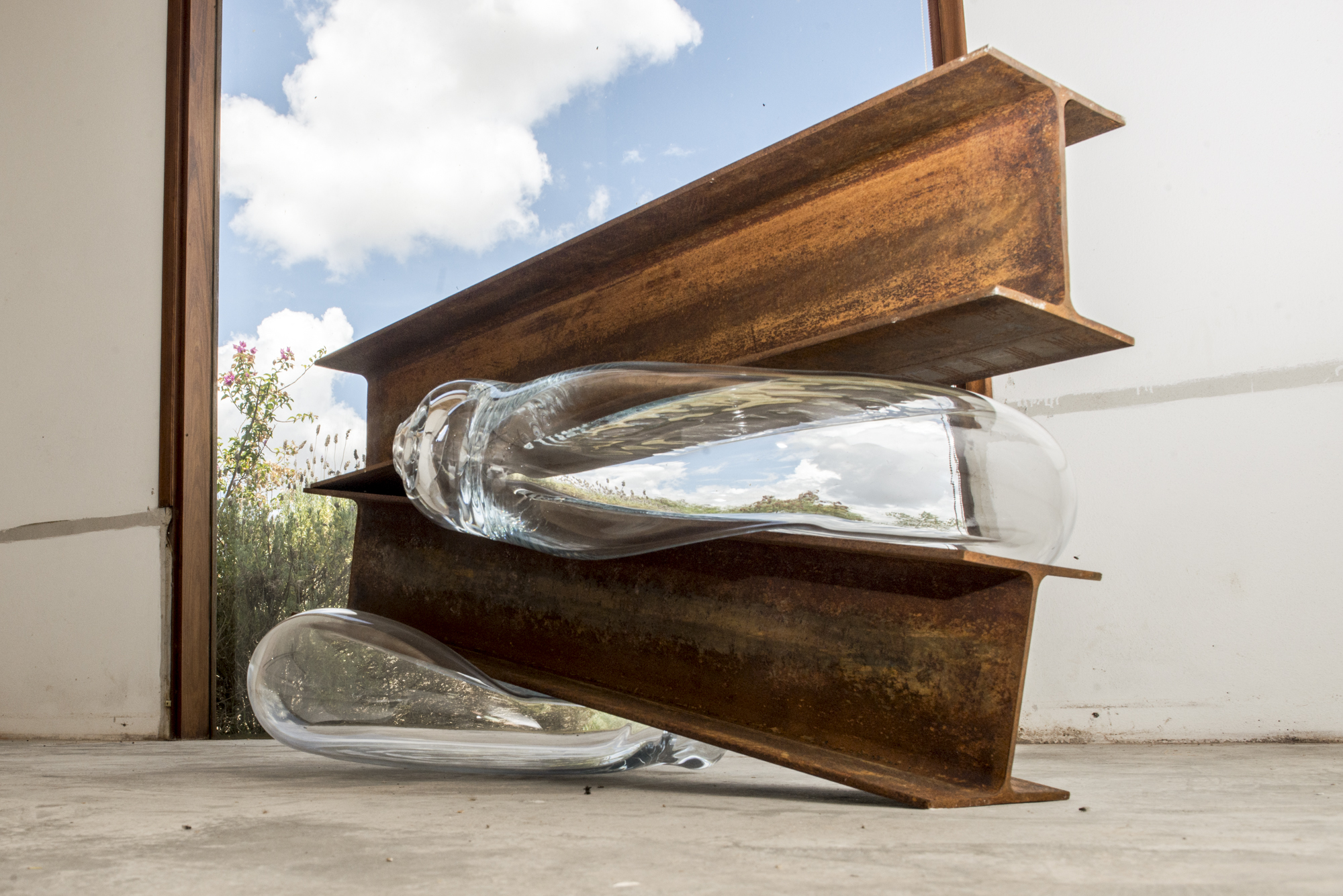 glass bubbles and steel beams