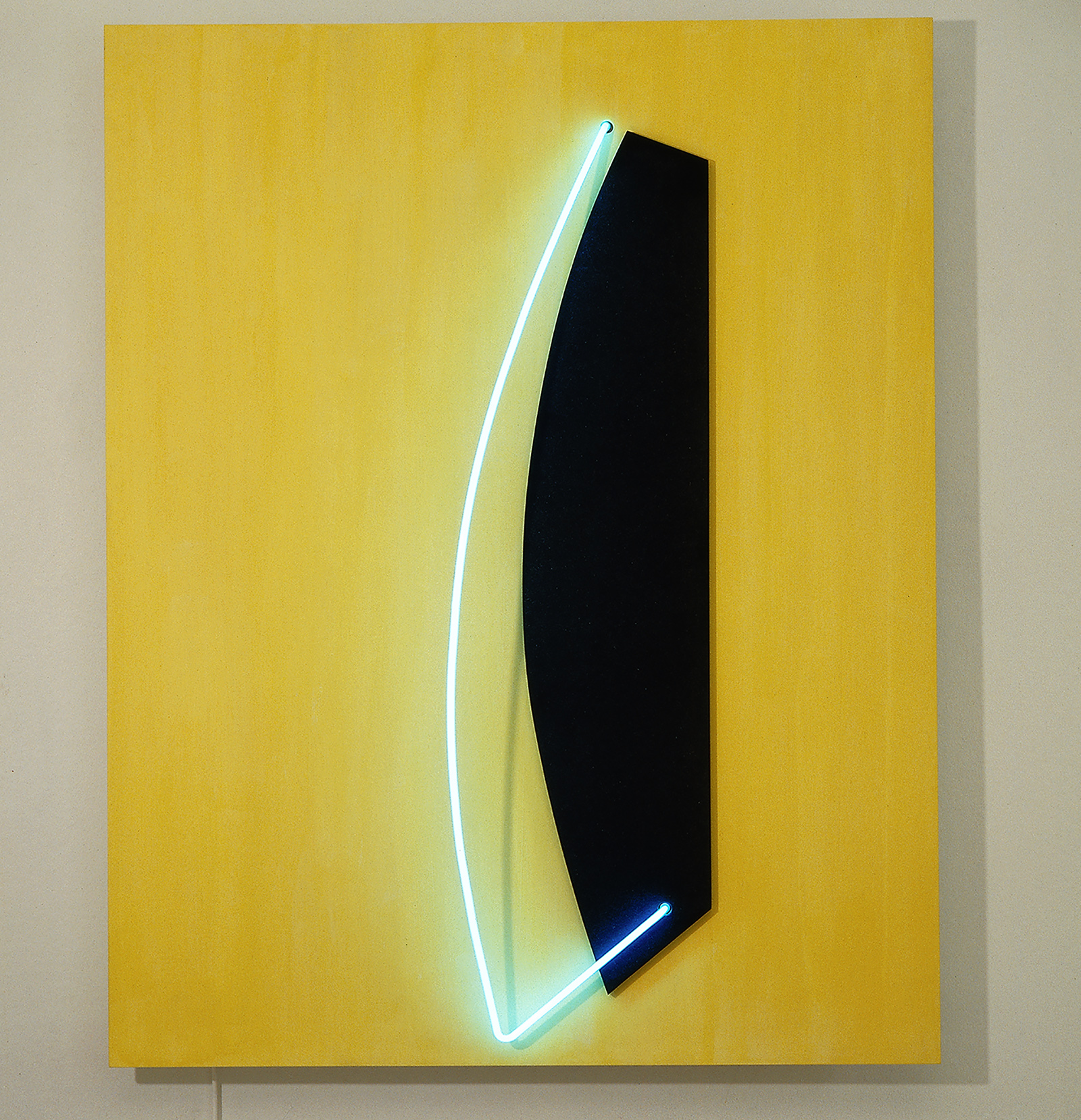 Neon light, diabas, and painted wood