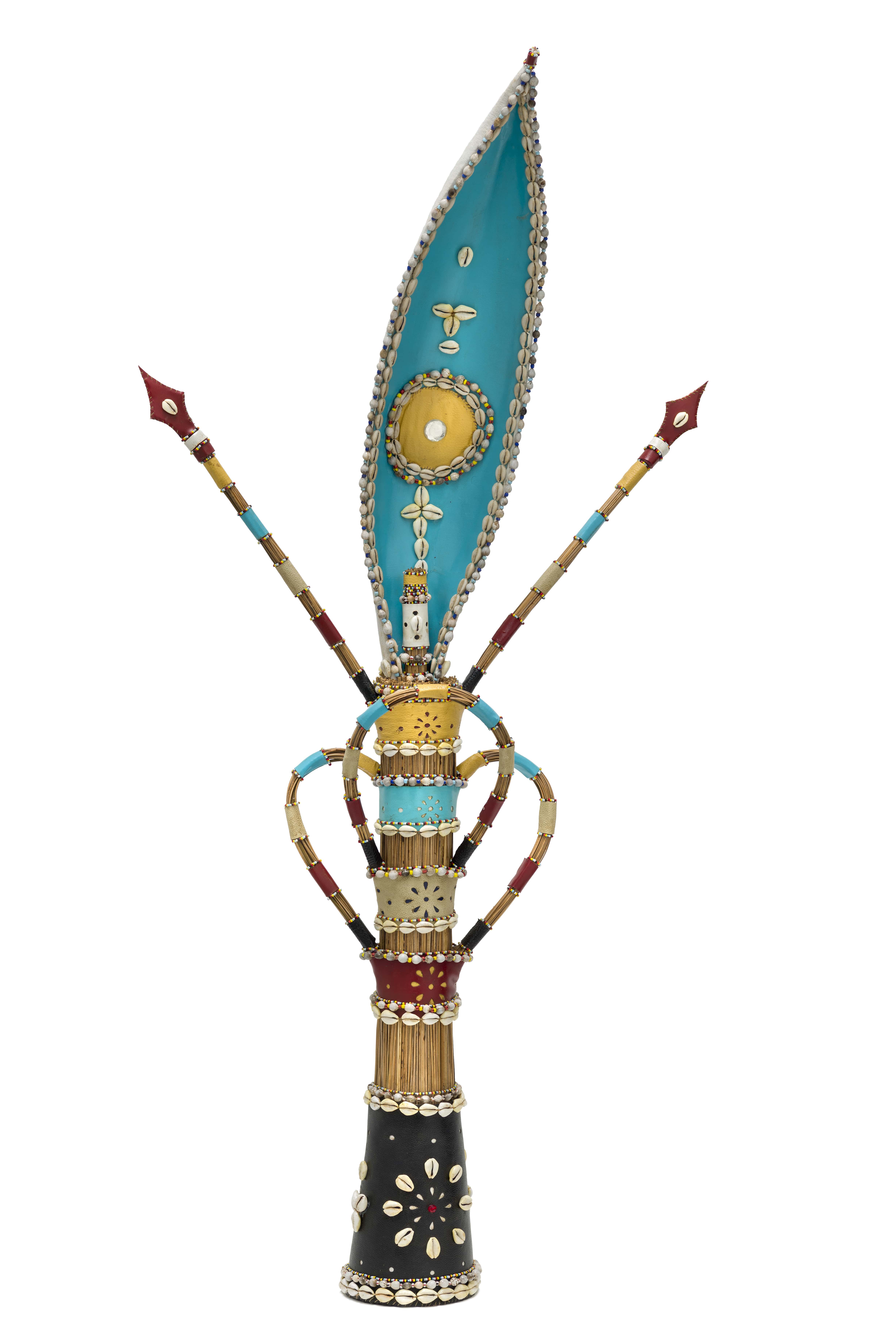 palm grove, painted leather, shells and coastal straw