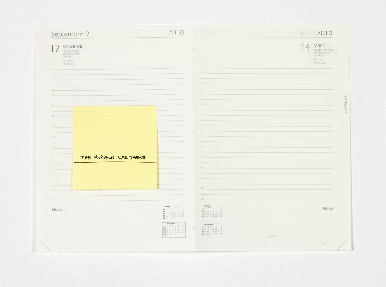 black felt pen on post-it, double agenda page