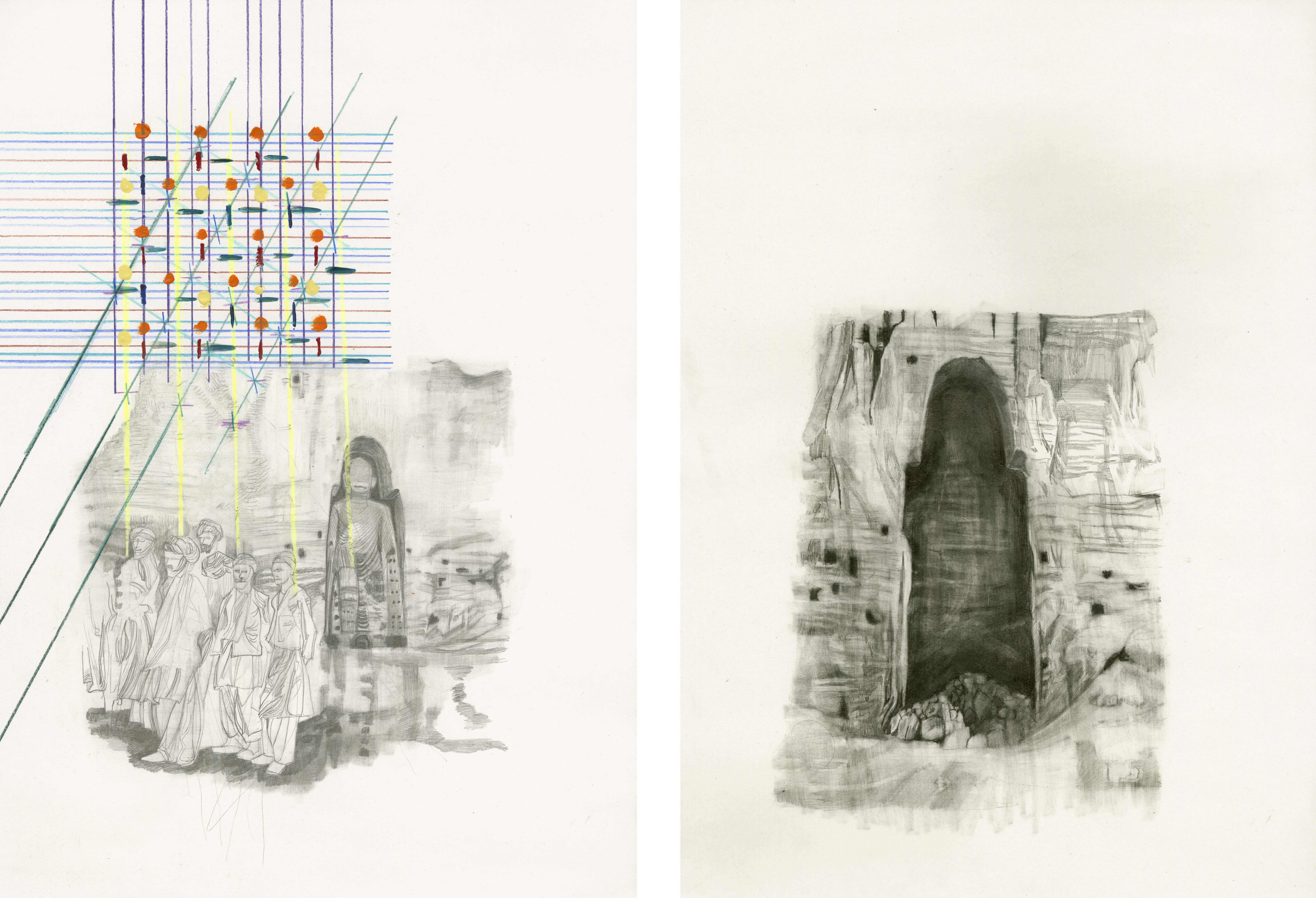 Diptych, pencil, color pencil and watercolor on paper, each