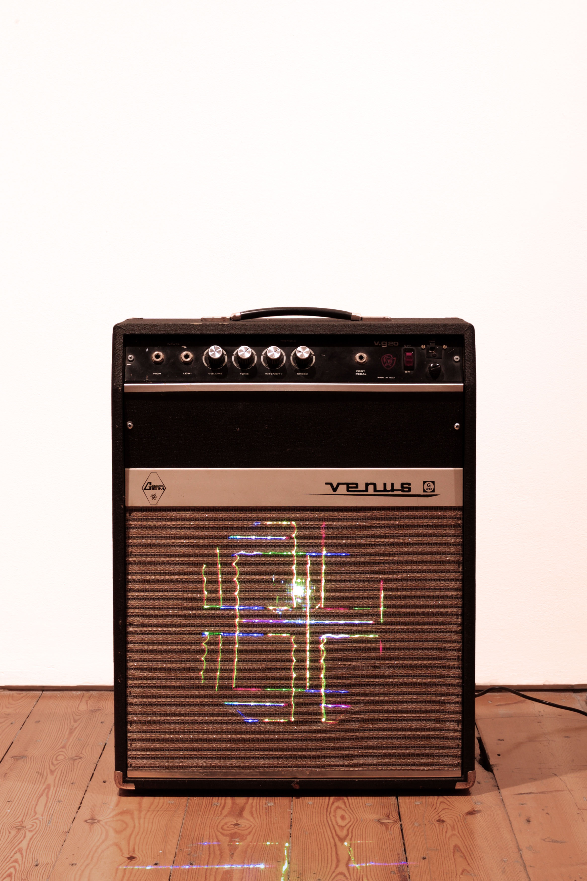 subwoofer, laser lighting, wooden box, electric cables